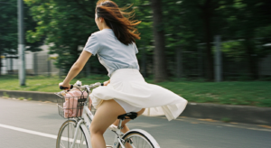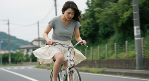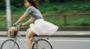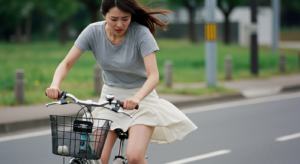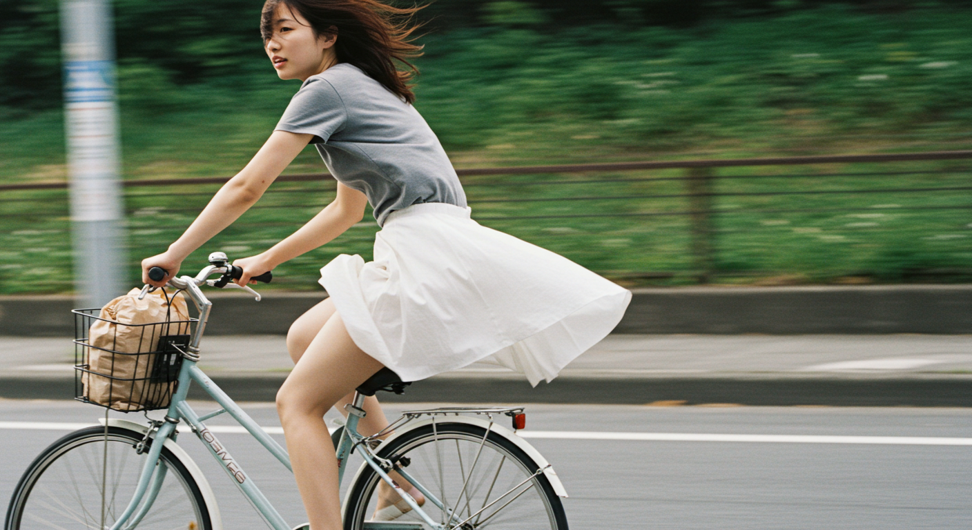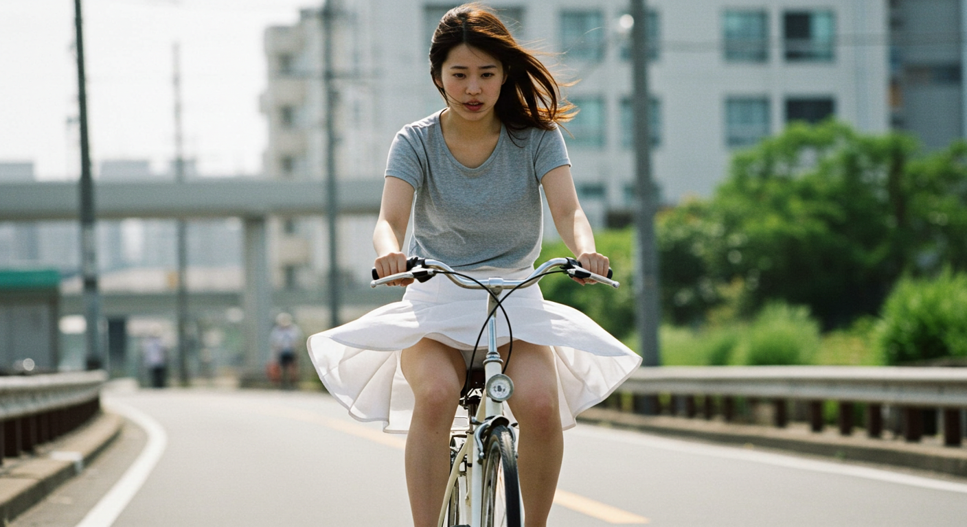 パンチラを誘発する強い向かい風に戦々恐々。スカートで自転車に乗る女子のセクシーリスク。