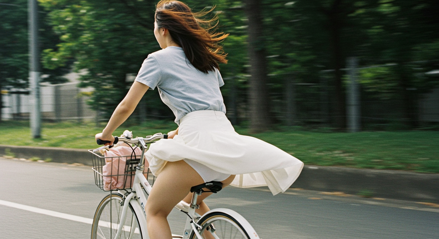 風の強い日にヒラヒラスカートで自転車に乗る女子を発見したら男だったらつい注目しちゃいますよね。