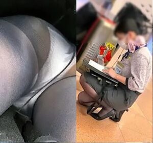 乗客に逆さ撮りされてしまうCA!