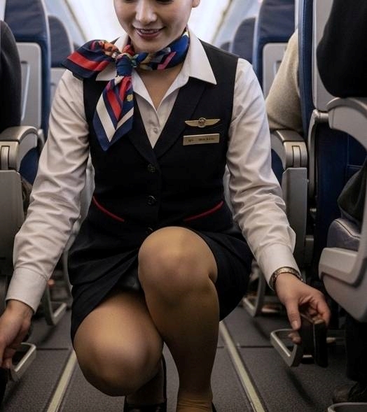 美人キャビンアテンダントの秘密のスカートの中はこうなっていた!