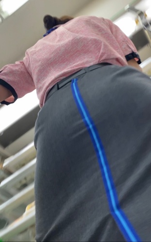 後ろを向いた時油断して足が開くと禁断のタイトスカートの中が!